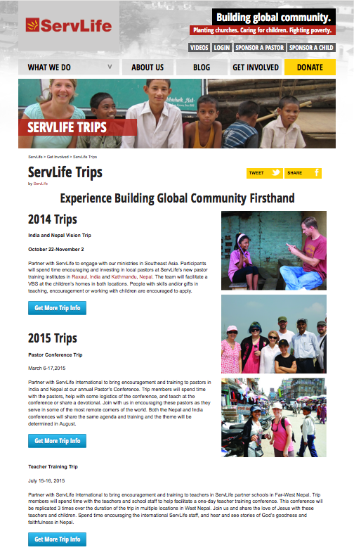 http://servlife.org/getinvolved/trips/ Published July 16, 2014 at 504 × 782 in Social Media & Web ← Previous Next → ServLife Trips Page