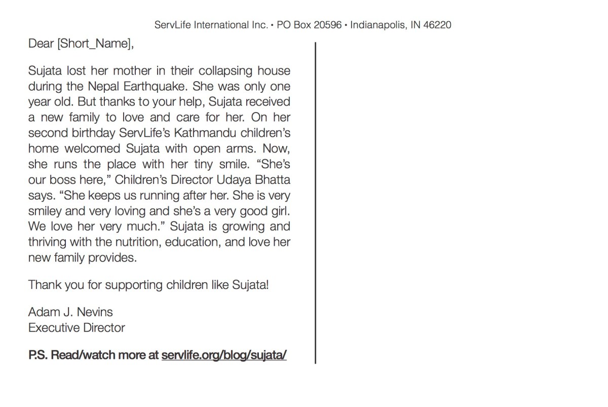 Spring Donor Touch Back Published July 2, 2016 at 1827 × 1224 in Marketing Management ← Previous Next → Sujata Donor Touch Story