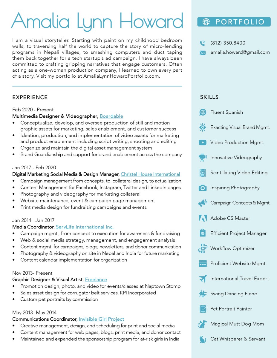 Amalia Howard Resume 2022 – Online Published March 7, 2022 at 2550 × 3300 in Resume ← Previous Next → Page 1 Like Loading...